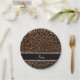Custom name chocolate brown glitter leopard print paper plates
