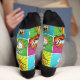 This fun Halloween socks are bright and colorful. The small print is crisp and shows the fun details. The softness of the socks feels nice on my feet and ankles. .