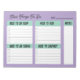 This is a perfect planner for busy families... easy to use and well organized. Each page rips off after use and the new page is ready for the next week. Clear print and personal monogram is fun.