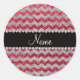 Custom name crimson red silver glitter chevrons classic round sticker