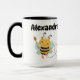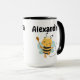 Customizable personal name two-toned mug with Cute design of a happy bumblebee flying with a heartshaped traile and a «magic wand». A everyday large mug reminding you of first searching inwards for happiness and luck. Add your name and this will be your personal everydag go-to mug. A perfect and thougtful gift for frequent use with self love and a happy feel. Spread the love.