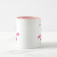 Cute personalized Christmas mug with cheerful gnome in pink apparel.