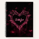 Add a spooky-sweet vibe to your note-taking with this personalized gothic heart spiderweb notebook. Featuring a glowing neon pink heart-shaped spiderweb against a dramatic black and maroon background, complete with tiny flying bats and blood-drip details, this edgy notebook is perfect for Halloween lovers, alternative style fans, and dark aesthetic enthusiasts.