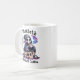Custom Text Personalized Grim Reaper Coffee Mug - 'Dead Before Coffee' Funny Halloween Mug for Women - Perfect Gift for Coffee Lovers & Spooky Enthusiasts. This unique coffee mug features a playful watercolor illustration of a cute Grim Reaper drinking coffee inside a skull, surrounded by smaller skulls. The vibrant design combines teal, pink, purple, and black, creating a bold and spooky look. Personalize this Halloween mug by adding the recipient's name for a one-of-a-kind gift. Ideal for birthdays, anniversaries, Halloween, or any occasion for those who love coffee and all things spooky, dark, and macabre. All text is editable.