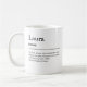 Create your own one-of-a-kind personalized name coffee mug with the name definition of your favourite person, best friend, your mom, your dad or siblings, your husband or wife, grandma or grandpa... Modern dictionary style custom name definition, black typography and clean and simple design. A personalized gift idea for your best friend, colleague or family member. Put the first name and your very own dictionary description to make a unique meaningful gift for birthdays, anniversaries, mothers day, Christmas, really any occasion. Make it sound official or give it a funny twist and enjoy the look on the face when it gets unwrapped.