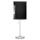 I have purchased other similar lamps. I use them as extra light for guest's. They are inexpensive, easy to assemble and good height for reading. I like that there are many pre-made shades to choose from and that, like this one, you can use your own art.