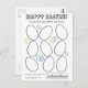 This color and decorate coloring page postcard is a great indoor Easter activity for kids! This colorful activity sheet features 9 large eggs that are white and ready to be colored and decorated! Some decorative colored eggs are sprinkled around and can be decorated too -- just add your own zig zags, lines and polka dots! There are a total of 18 eggs on the front of this Easter coloring activity page for kids to express their creativity!