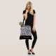 Elevate your everyday style with this elegant black and white fashion tote bag. The design features a refined leaf‑and‑vine pattern on a crisp white background, paired with bold black trim for a classic look. Personalize the front with your name or initials in feminine white script calligraphy using the easy template — just replace the letters between the rectangles to keep the stylish first‑and‑last‑letter effect.