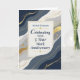 This elegant employee work anniversary design celebrates five years of service with a personalized name featured on the front. Flowing navy and gray shapes, refined gold accents, and a clean cream center panel create a polished presentation suitable for professional recognition. Designed to honor commitment, dedication, and continued contributions, it is a meaningful way to recognize an employee reaching their five-year work anniversary.
