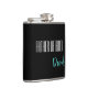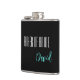 Flask for the father of bride is shown in black with teal and white text and has a sample name.