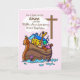 Noah’s Ark on a pink girl’s Baptism card is so precious. The animals are looking out of Noah’s Ark, seeing the cross through the clouds. Sweet card to give to a girl as she celebrates the fifth anniversary of her Baptism. You can personalize the name of that special girl on this card.