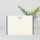 Custom name flat note card shown in ivory with a slim navy blue double border trim also with a golf inspired winners wreath print.