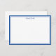Custom name flat note card shown in the basic matte white paper with a slim royal blue color double border trim.