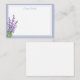 Custom Name Flat Note Card is shown in white with a Lavender double border trim and a lovely Lavender flowers print.