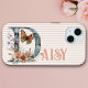 Custom Name | Floral Butterfly Initial Peach Blue Case-Mate iPhone Case