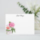 Note Card is shown in white with a lovely pink peony and pink rose flower print. Shown with a custom sample name. Envelopes included