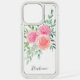 This pretty phone case is decorated with a watercolor bouquet of roses and foliage in shades of pink, coral, and green.