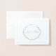 Custom name Note Card is shown in white with a sample name and border trim and accent print in real silver foil.