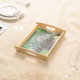 This is a well made, sturdy wooden tray with a flawless black finish and lovely map on the tray surface. It is both vintage & modern at the same time. Looks exactly like the photo; does not disappoint. So nice to find something of quality individually made and not the mass-produced 'shabby chic' merchandise seen in stores. I am so pleased to be able to give this to my college-age niece for her birthday. This can be used as a tray to hold jewelry or toiletries, or hung on the wall as art. The map surface is sealed (it is slightly shiny) so would be moisture resistant. It is well worth the asking price but I was able to apply a sale code as well. Very happy with my purchase. Map is crisp & clear and sealed with a water-resitant finish.