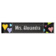 This cheerful, fun and loving desk nameplate design features a pattern of heart shapes of various sizes and colored a variety of colors. It also features a personalized name in white colored text within a dark colored area. It could perhaps be used on the desk of a teacher, educator, professor, doctor, lawyer, or some other professional. [~Z0000047]