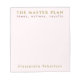 Fun stylish chic simple minimalist premium look personalized notepad for the productivity and planning lovers, the unapologetic list maker. Delicate elegant pastel pink feminine girly background and classy golden and maroon brown typography. Add your name and custom text, for example the fun phrase saying quote THE MASTER PLAN that resonates so well with some of us, who have list making enthusiasm. We want to be organized and efficient, to have anything well planned The subtitle, written in trendy maroon brown color, complementing the golden, can say for example, “ ideas, actions, results”. All text is customizable at your wish. Of course you can delete or add to it or make changes to adapt it perfectly to the user functionality .This aesthetic personalized stationery is very useful to you or as a thoughtful heartfelt gift for her, a friend, a mother, a grandmother, a sister, a daughter , a coworker, a colleague etc. A custom gift under 15 dollars for her, suitable for many occasions and celebrations, like birthday, Mother’s Day, Christmas, anniversary etc. A perfect custom productivity gift for a plan maker enthusiast, to use at home, home office or professional office workplace.