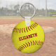 This girly softball keychain features a yellow softball graphic with easily customizable player's name - the ball and name are oriented at a slight angle, and the ball has a grungy appearance, like it's been through a few practices - by katz_d_zynes | see more softball gifts >>> https://www.zazzle.com/store/katz_d_zynes/products?cg=196687726942766540 | baseball gifts >>> https://www.zazzle.com/store/katz_d_zynes/products?cg=196650898718076008