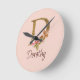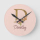 Custom Name Gold Foil Blush Pink Roses Letter D Round Clock