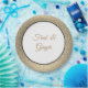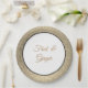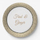 Party paper plate shown in a lovely Gold fine faux glitter print around the rim and White center. Your personalized names in a fancy script in center.