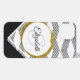 This eye catching black and white zig zag design sets off the top of this gift idea phone cover featuring a gold faux glitter oval with name and initial letter monogram template text over a black bottom. Fill in the template field, remove one of the text elements or edit using the design tool to select a font style, size, and color you like.