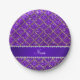 Girly, chic and trendy Personalized custom name quatrefoil indigo purple glitter (not real glitter) gold moroccan trellis pattern with a pretty purple diamond stripe ribbon (not real diamonds) with beautiful hearts and dots personalized with just add your name gifts or monogram gifts or your initials. Featuring an elegant and traditional white fancy lettering. These sparkly retro gifts are perfect for women and girls.