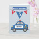 This blue, red, white and yellow card will be a hit on your great nephew's 5th birthday celebration. Imagine a police card rushing in to deliver this greeting for him. And add to that. That police car even has his name on its side.