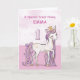 A sweet pink pony just like your great niece is prancing with the number one! Gold looking details are woven in her mane and tail. Perfect card to wish your great niece her 1st birthday! Personalize this card with your great niece’s name.