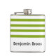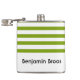 Custom name green and white stripes flask