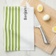 Custom name green and white stripes kitchen towel