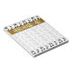 This notepad design features a grid of music notes. It also features a custom name within a faux gold like colored area. [~Z0000037]