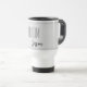 This travel mug for the groom is shown in a black and white style with grey color text and has a sample name.