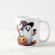 Spooky Halloween ghost mug featuring a cute, cartoon-style ghost perfect for your fall coffee or tea. Ideal for Halloween decor, this ceramic mug showcases a playful ghost with pumpkins. Great for Halloween parties, trick-or-treat nights, and cozy autumn vibes making it a perfect gift for Halloween lovers.