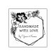 Design features "HANDMADE WITH LOVE" and your custom name in cute typography framed by a hand-drawn botanical wreath. Add a personal touch to your creations with these rubber stamps! You can change this text to your custom wording by clicking on "Personalize this template". For more advanced changes (like fonts and placement),