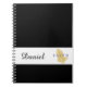 Custom name notebook shown in black with a accent strip with a hands of prayer print and a name. Customize this item and change the name to yours.