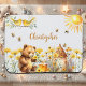 Introducing our Custom Name Honey Bees Teddy Bear Baby Blanket! With a colorful summer design, this baby blanket is both fun and playful and brings charm to any room! The smiling teddy bear with his jar full of honey, the two birdies on a branch, a yellow watercolor sun, a honeycomb and beautiful wildflowers create a magical, relaxing landscape!