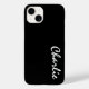Custom name iPhone 14 case is shown in a solid black color, customize this case and change the name to yours or change colors.