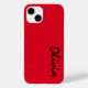 Custom name iphone 14 case is shown in a lovely red color.