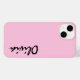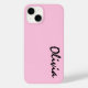 Custom name iphone 14 case is shown in a lovely pink color.