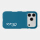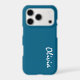 Custom name iPhone 17 pro case, slim is shown in a solid ocean blue color.
