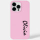 Custom name iphone 14 pro max case is shown in a lovely pink color.