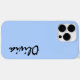 Custom name iphone 14 pro max case is shown in a lovely periwinkle color.