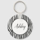 This keychain is shown in a black and white animal zebra print design with a sample name.
