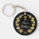 Acrylic keychain for golfer's is shown with a gold winner's wreath print, shown with a sample custom name, customize and change the text to yours.