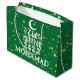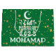 Modern cute green stars Eid Mubarak 2023 gift bag that you can customize and personalize the name - Happy Eid gift bag Muslim holiday Eid gift bag by Paper works co.