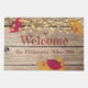 Welcome your guests with this rustic wood background, fall leaves, and string lights with a Welcome and personalized text. Personalize the text, remove the text or click customize to select a font style, size, and color you like. You can also transfer the design to products shown in the transfer scroll.
